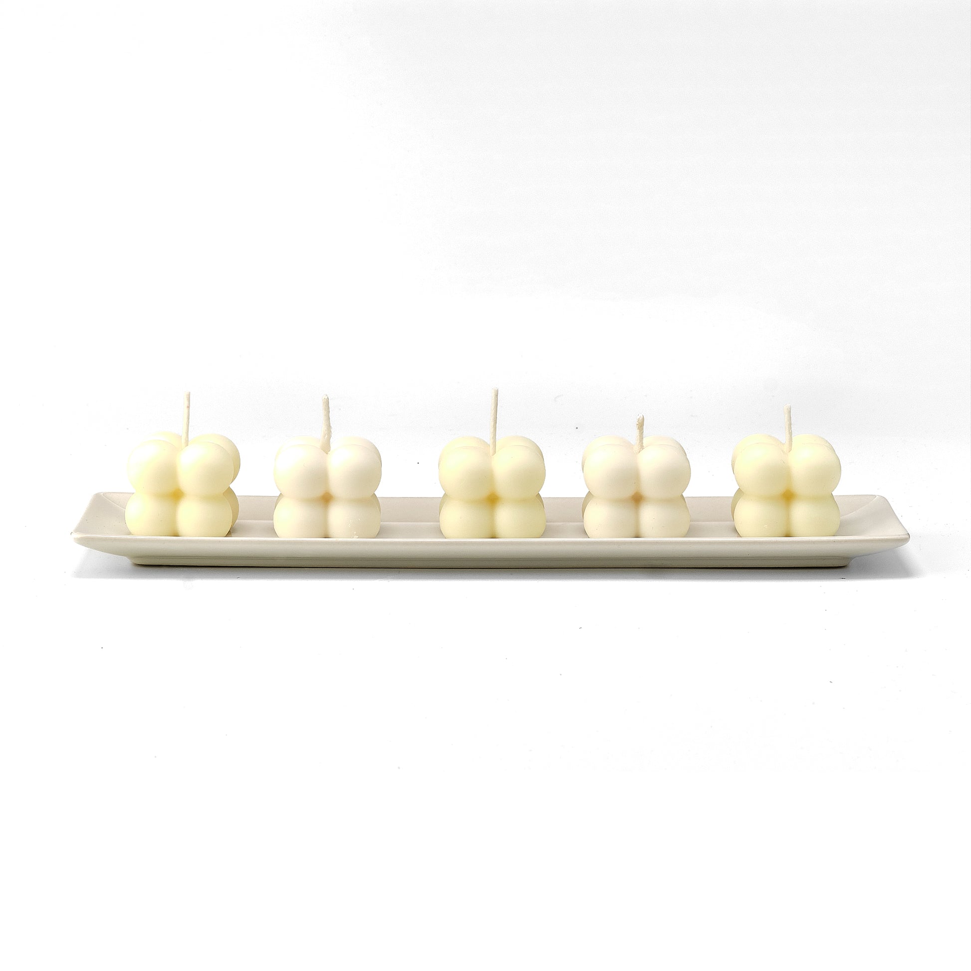 Bubla es una vela decorativa con diseño contemporáneo que una la belleza escultórica con un toque sutil de fragancia. Fabricada artesanalmente con cera de soja 100% premium y vegana , su forma cuadrada está compuesta por cuatro delicadas esferas que la convierten en una pieza única, moderna y sofisticada.