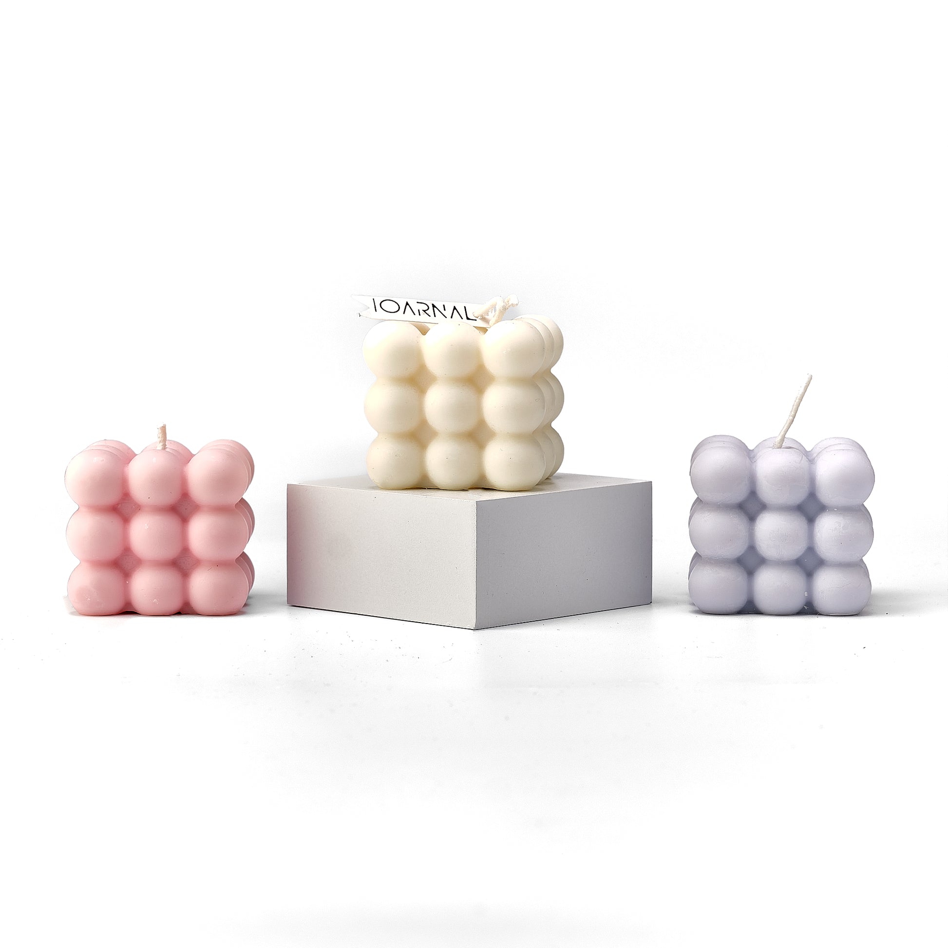 KUBO es una vela decorativa de diseño contemporáneo que une geometría, elegancia y frescura en una sola pieza. Con su forma cúbica compuesta por suaves esferas en una estructura 3x3 por cada cara, esta vela no solo ilumina visualmente, sino que redefine el concepto de decoración moderna.