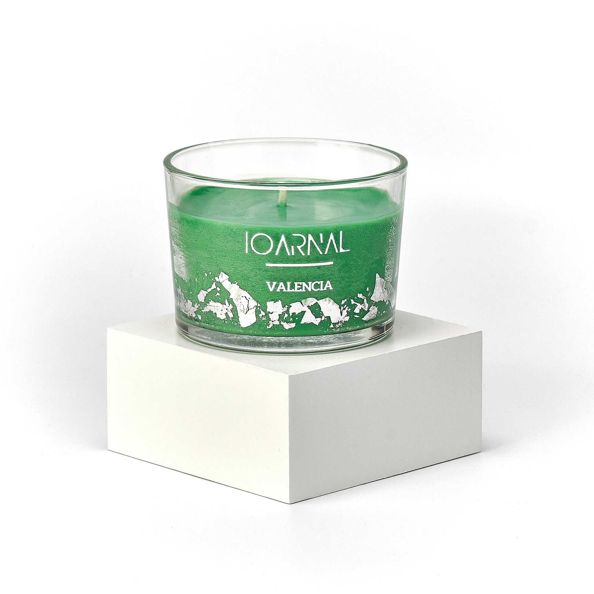 Fundida en un recipiente de cristal transparente , decorado a mano con finas hojas de pan de plata , esta vela combina estética minimalista con un toque artesanal de lujo. Su cera de soja 100% premium , en un distintivo color verde helecho, asegura una combustión limpia, sostenible y duradera.